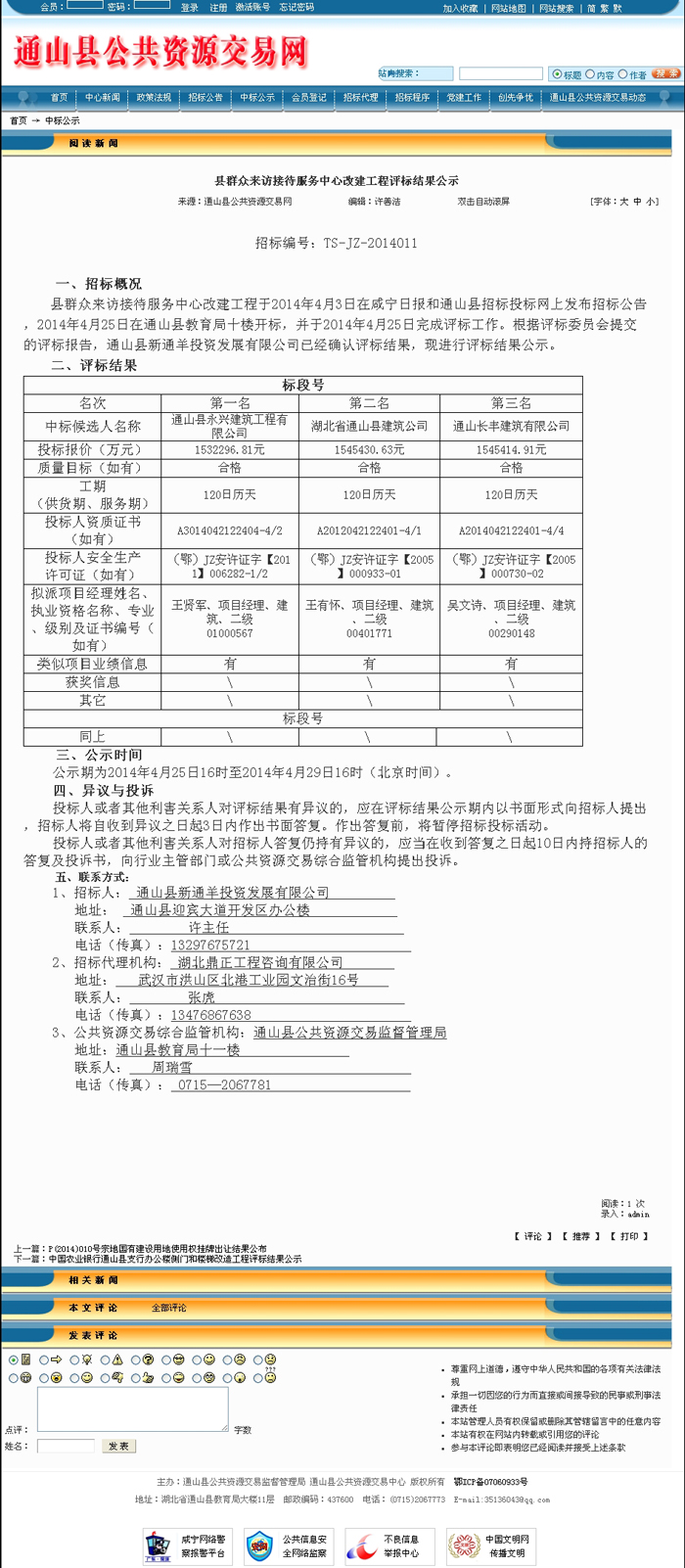 縣群眾來訪接待服務(wù)中心改建工程評標(biāo)結(jié)果公示