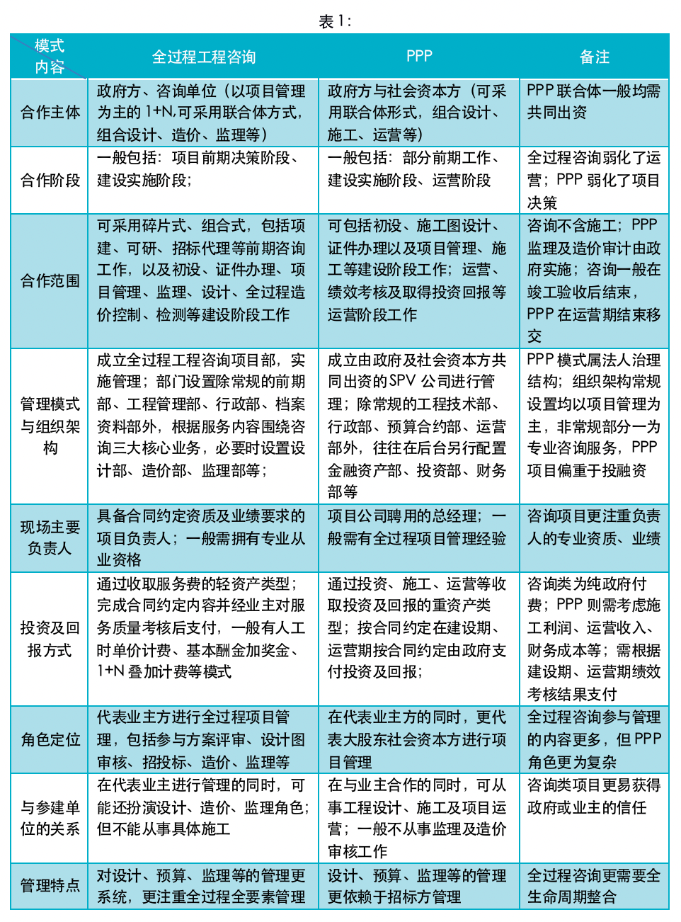 1、全過程咨詢與PPP管理的概念對比
