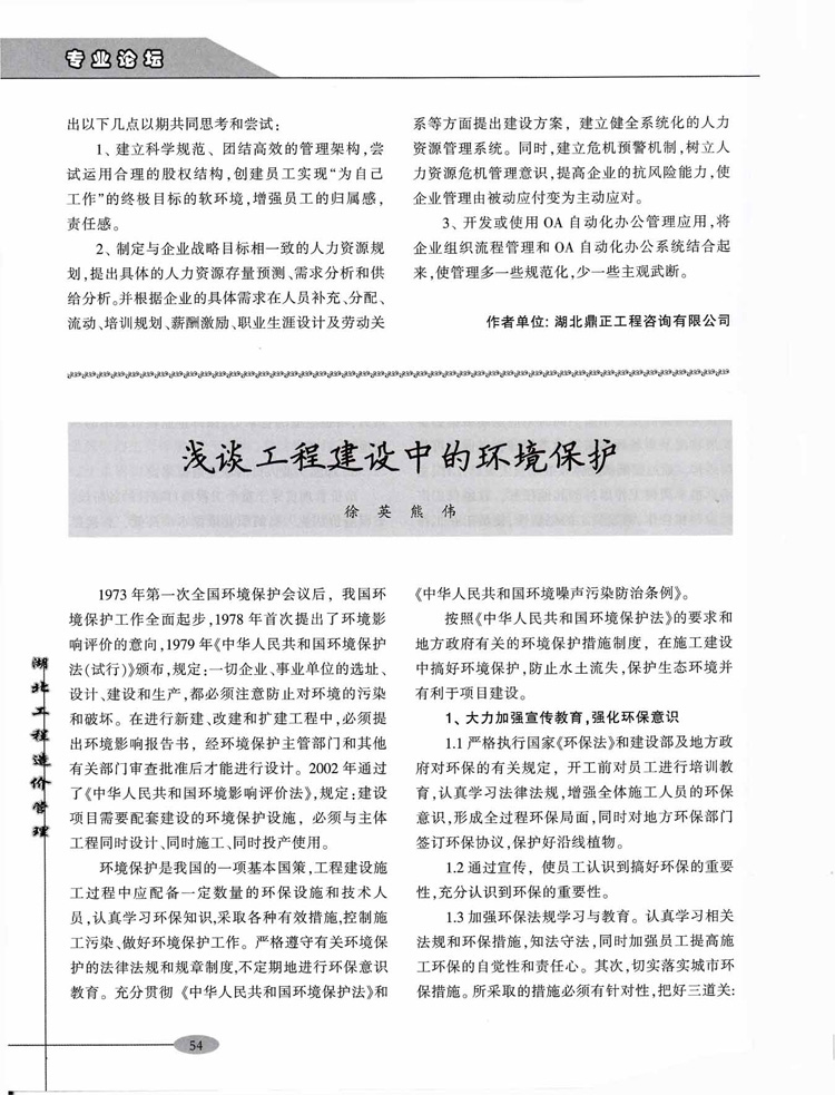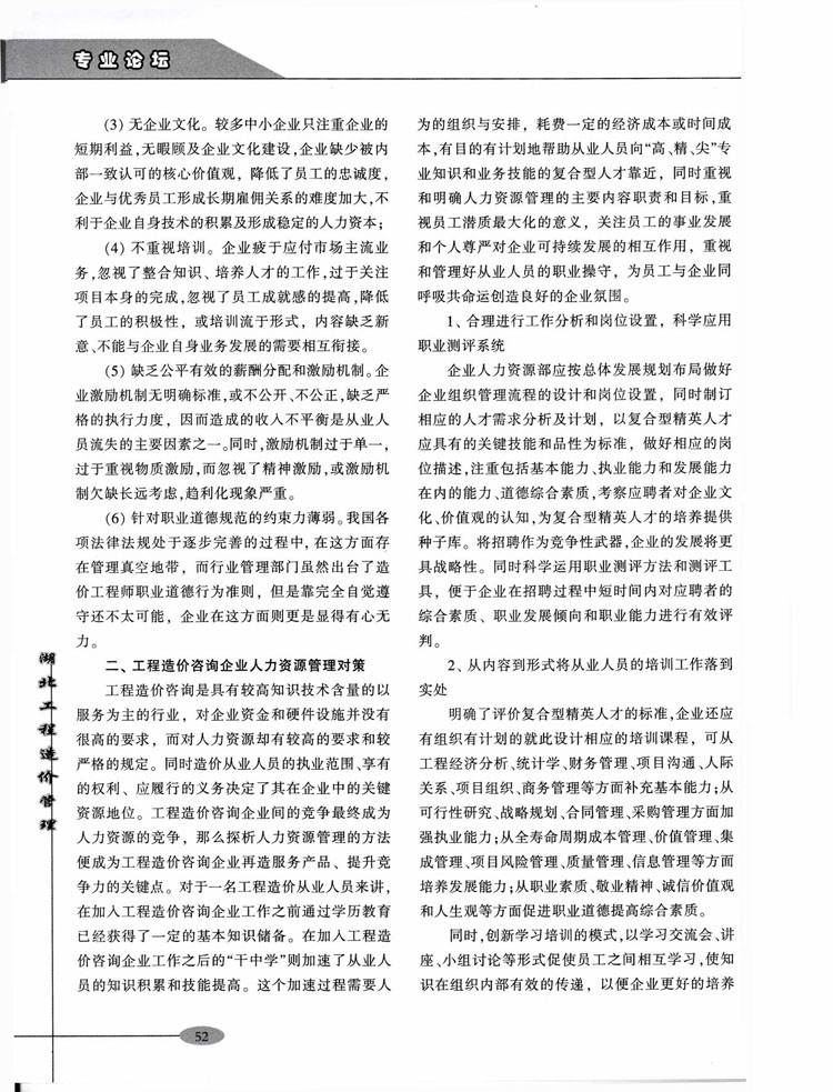 熱烈祝賀我公司員工所著文章《工程造價(jià)咨詢企業(yè)的人力資源管理淺析》在《湖北工程造價(jià)管理》雜志
