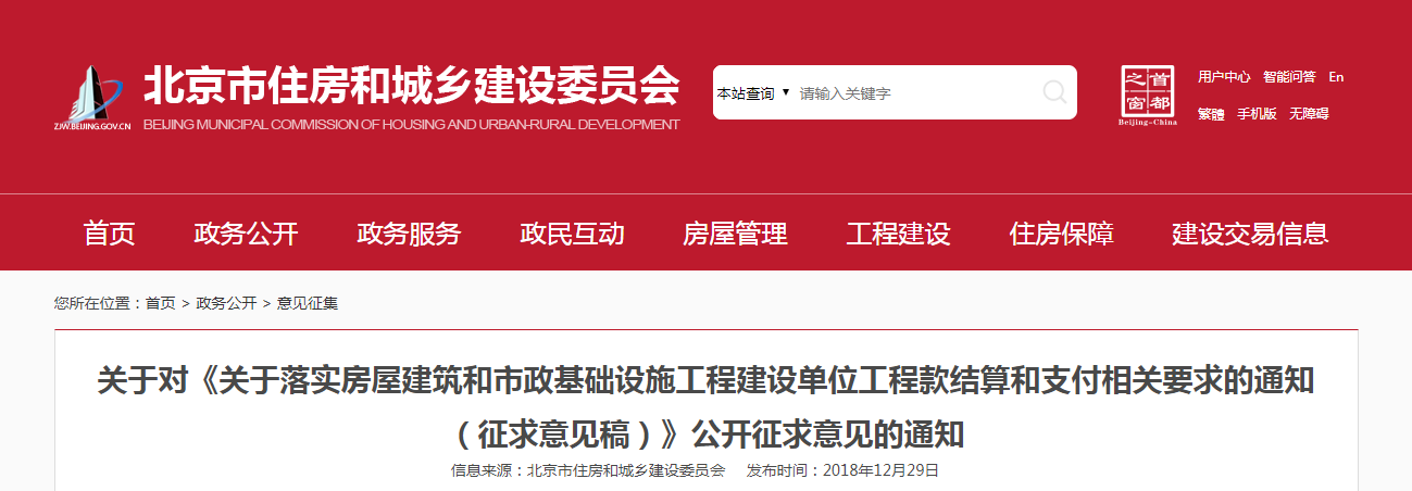 2019年1月17日,北京市住建委發(fā)布《落實房屋建筑和市政基礎(chǔ)設(shè)施工程建設(shè)單位工程款結(jié)算和支付相關(guān)要求的通知》,其中明確指出: