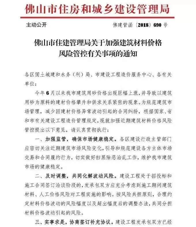 深圳市住房和建設局關于加強我市建設工程材料價格風險管控的通知