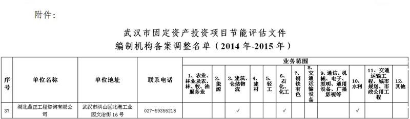 我公司入選武漢市固定資產(chǎn)投資項(xiàng)目節(jié)能評(píng)估文件編制機(jī)構(gòu)名單