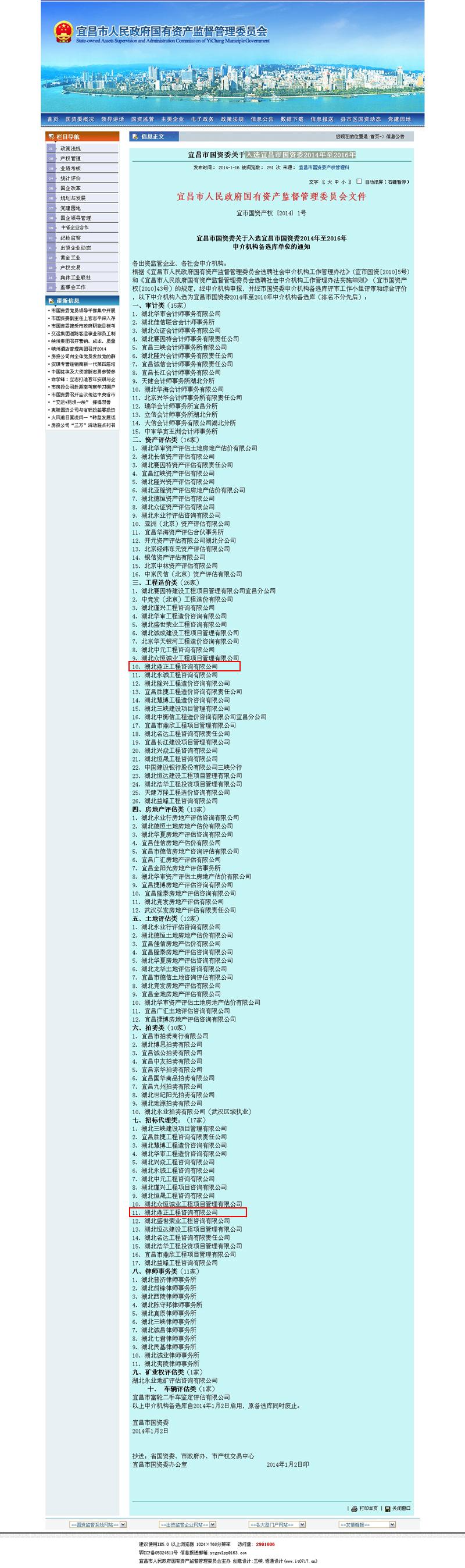 我公司入選宜昌市國資委2014年至2016年中介機(jī)構(gòu)備選庫
