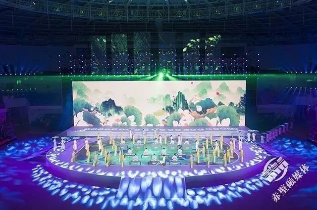 夜幕下的赤壁市體育中心場(chǎng)館內(nèi),燈光璀璨,五彩繽紛,美輪美奐。