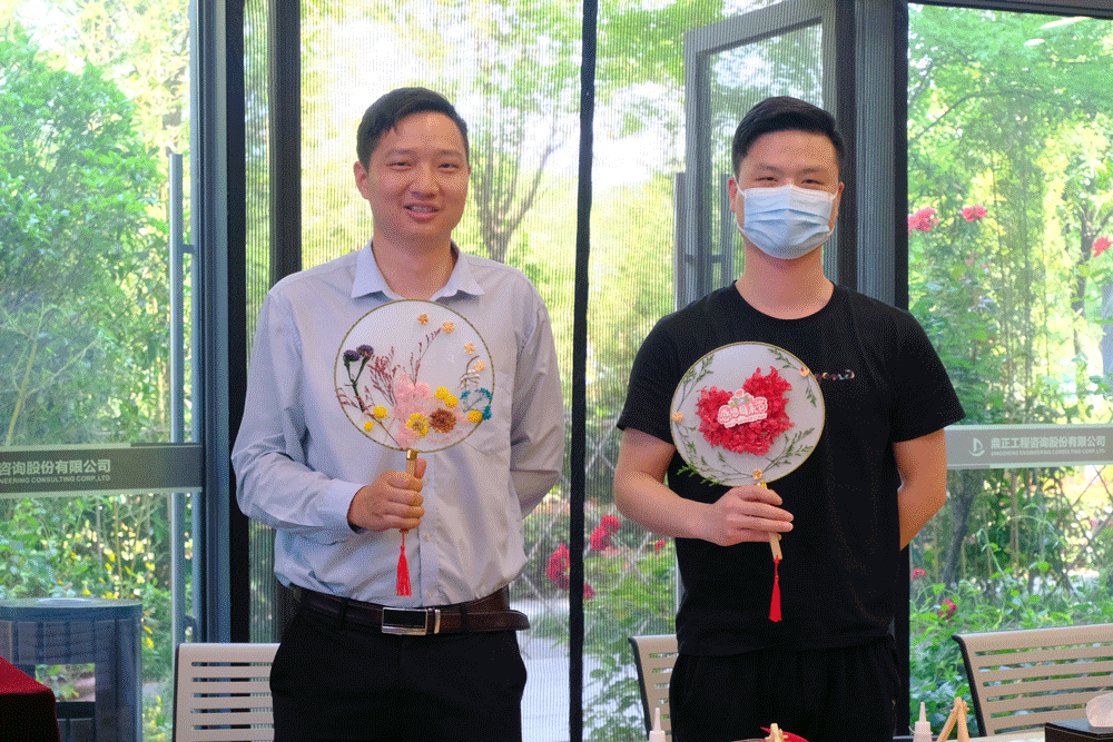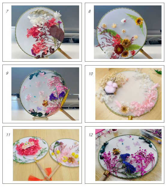 選樣、描線(xiàn)、粘花···一番精心的制作,大家都完成了屬于自己的團(tuán)扇。