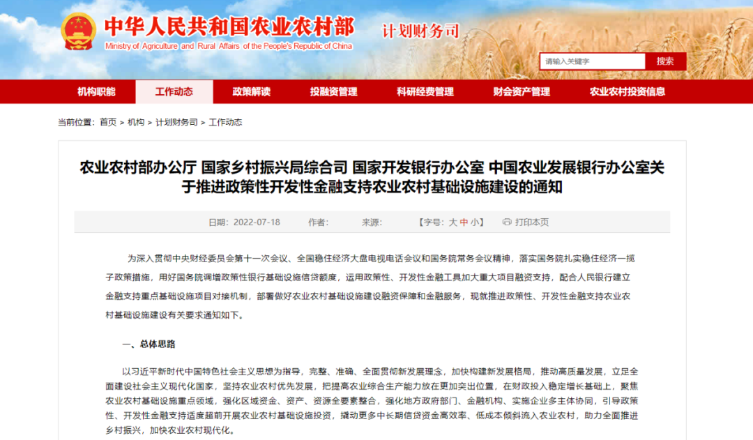 關(guān)于推進(jìn)政策性開(kāi)發(fā)性金融支持農(nóng)業(yè)農(nóng)村基礎(chǔ)設(shè)施建設(shè)的通知