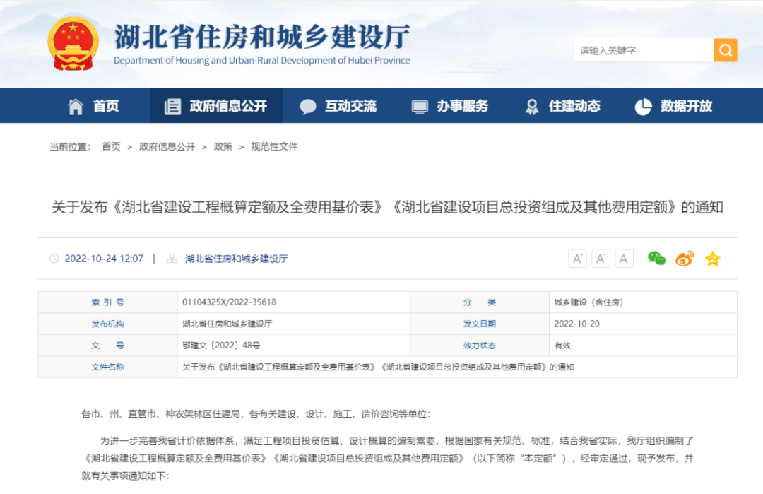 2.湖北省住建廳發(fā)布《湖北省建設(shè)工程概算定額及全費用基價表》《湖北省建設(shè)項目總投資組成及其他費用定額》的通知
