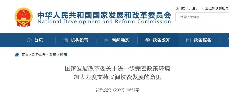 1.國家發(fā)展改革委發(fā)布進(jìn)一步完善政策環(huán)境加大力度支持民間投資發(fā)展的意見