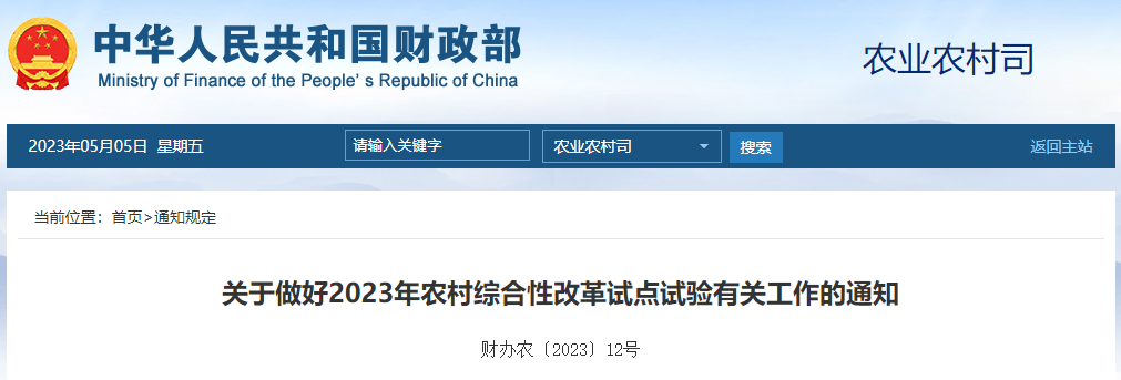 財政部關(guān)于做好2023年農(nóng)村綜合性改革試點(diǎn)試驗(yàn)有關(guān)工作的通知