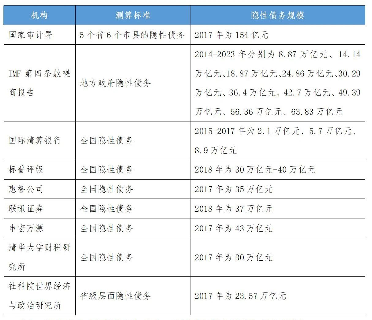 表1-1  關(guān)于隱性債務(wù)規(guī)模的測(cè)算