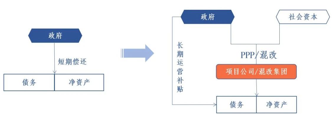 (2)對(duì)具備經(jīng)營(yíng)條件的政府隱性債務(wù)項(xiàng)目,可通過(guò)引入社會(huì)資本等方式,將其改造為社會(huì)資本的債務(wù);