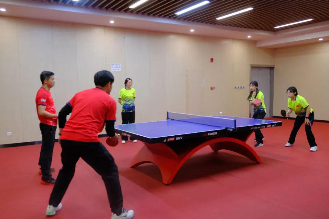 下午2時(shí),鼎正董事長(zhǎng)王雁然宣布校企乒乓球聯(lián)誼賽正式開始。