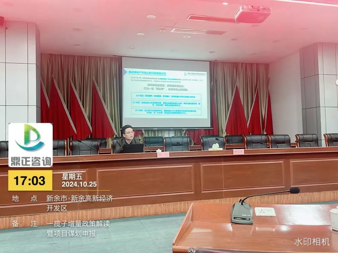 自9月下旬以來,國務(wù)院等多部門密集發(fā)布了一攬子增量政策,并引發(fā)了社會各界的廣泛關(guān)注。為搶抓增量政策窗口期,提升地方政府項(xiàng)目謀劃儲備質(zhì)量和項(xiàng)目謀劃水平,精準(zhǔn)擴(kuò)大有效投資。10月25日,鼎正副總經(jīng)理彭亮受邀為新余高新區(qū)政府作《一攬子增量政策解讀暨項(xiàng)目謀劃申報(bào)》的專題培訓(xùn)。