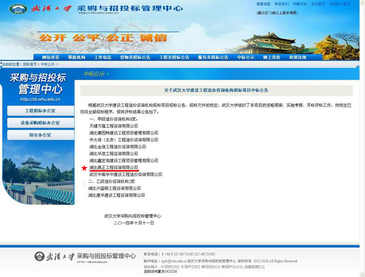 此前,我司還承接了武漢理工大學(xué)、武漢工程大學(xué)等高校造價(jià)咨詢業(yè)務(wù),本次入圍武漢大學(xué)信息庫,更加充實(shí)了我司在高校業(yè)務(wù)板塊相關(guān)業(yè)績。