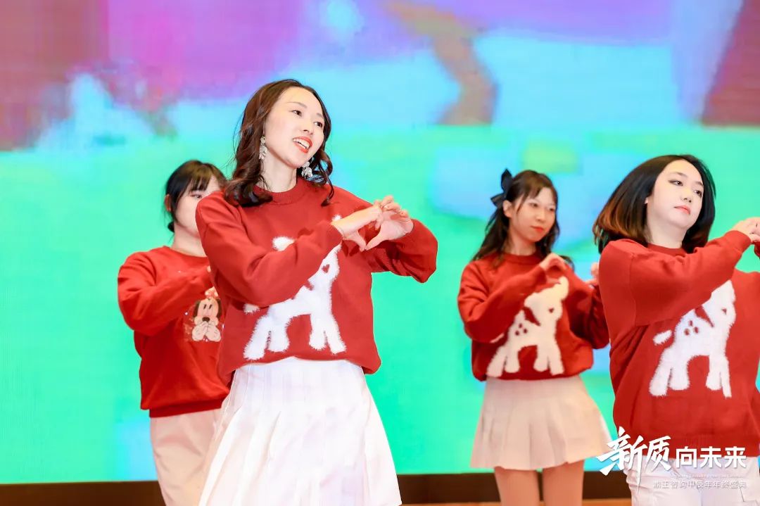 另一邊,由信息部、投標部、城市公司發(fā)展部、市場部、財務部及造價咨詢事業(yè)部臨時組建的女團,帶來了洋溢著青春活力的舞蹈串燒《愛你》+《桃花朵朵開》,展現(xiàn)了別樣的風采。