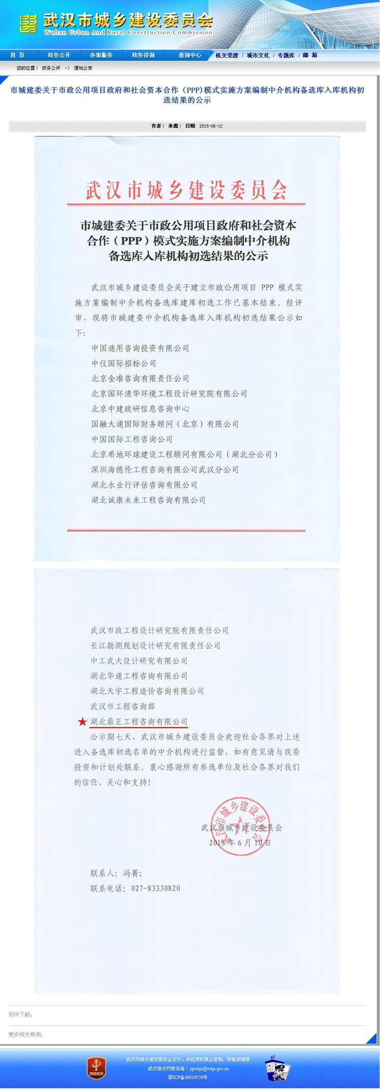 【經(jīng)營成果】我司入圍市城建委關(guān)于市政公用項(xiàng)目政府和社會(huì)資本合作(PPP)模式實(shí)施方案編制中介機(jī)構(gòu)備選庫