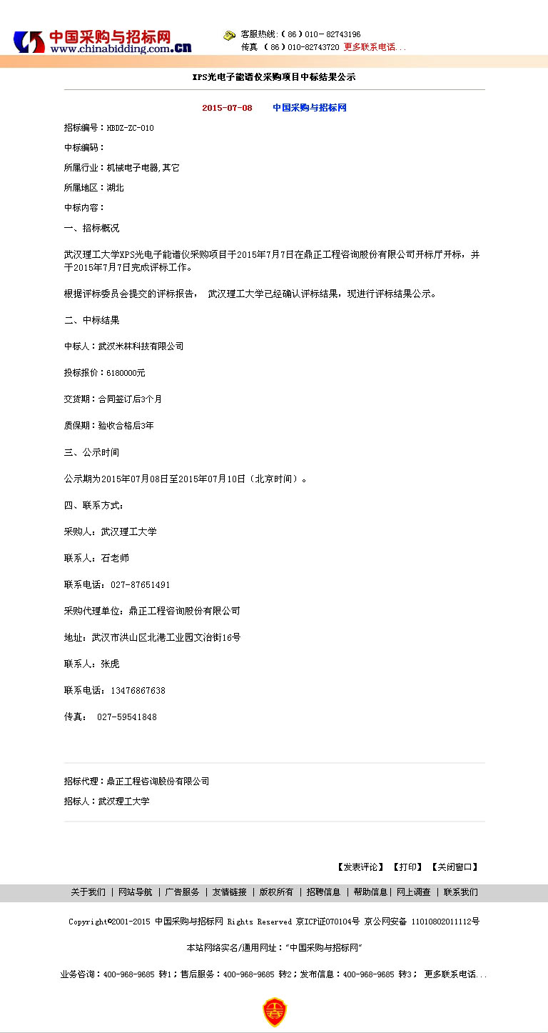 XPS光電子能譜儀采購(gòu)項(xiàng)目中標(biāo)結(jié)果公示