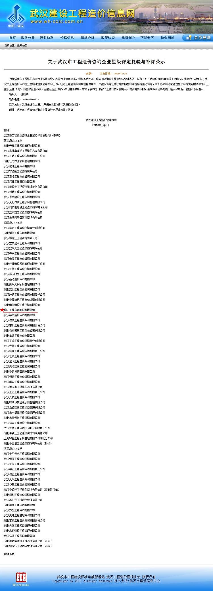 我司獲武漢市工程造價(jià)咨詢(xún)企業(yè)星級(jí)評(píng)定四星級(jí)企業(yè)稱(chēng)號(hào)