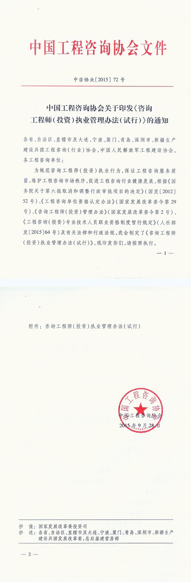咨詢工程師(投資)執(zhí)業(yè)管理辦法(試行)
