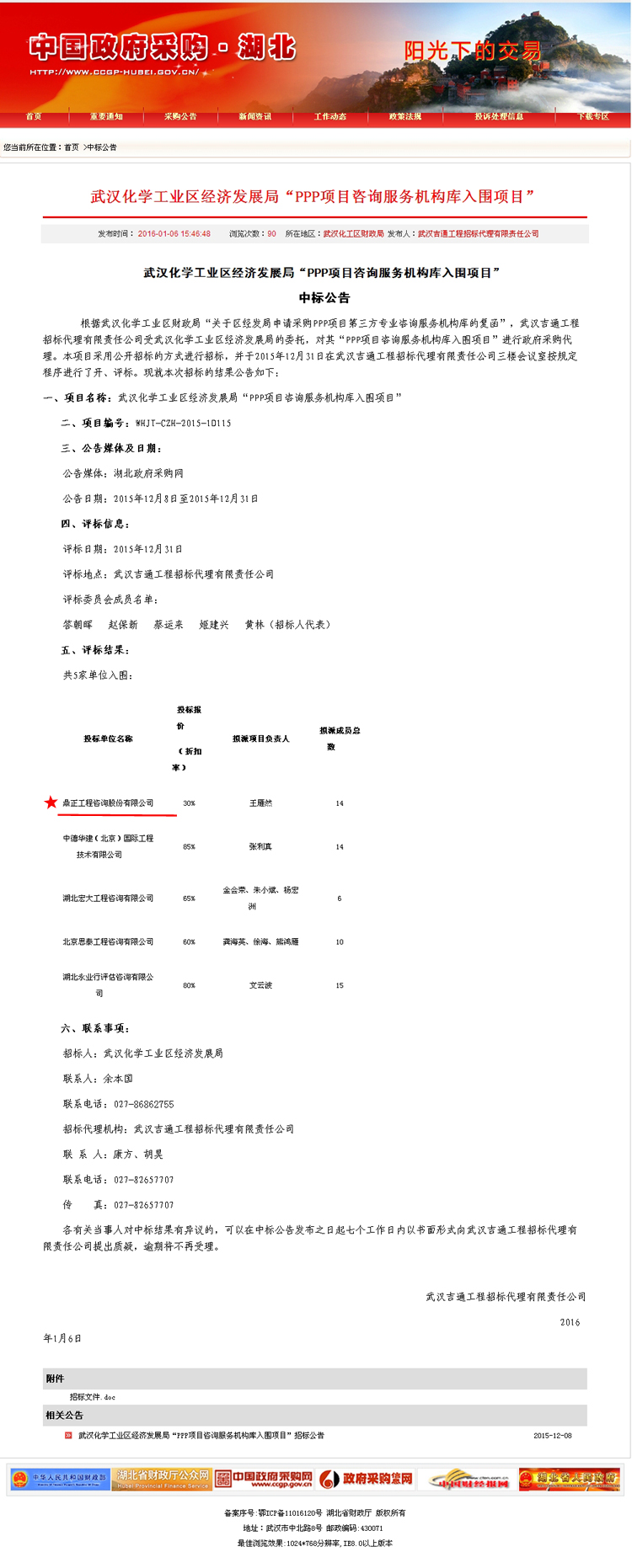 【經(jīng)營(yíng)成果】我司入圍武漢化學(xué)工業(yè)區(qū)經(jīng)濟(jì)發(fā)展局“PPP項(xiàng)目咨詢服務(wù)機(jī)構(gòu)庫(kù)”