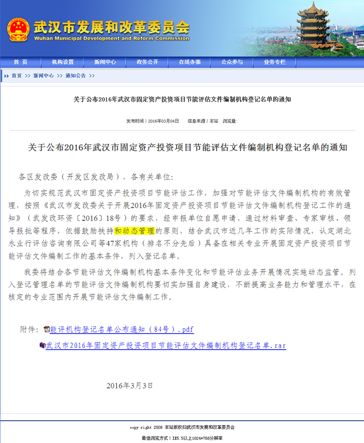【經(jīng)營成果】我司入選2016年武漢市固定資產(chǎn)投資項(xiàng)目節(jié)能評估文件編制機(jī)構(gòu)登記名單