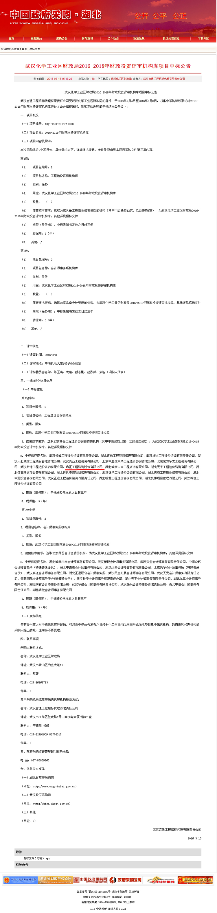 【經(jīng)營成果】我司入圍武漢化學(xué)工業(yè)區(qū)財政局2016-2018年財政投資評審機構(gòu)庫