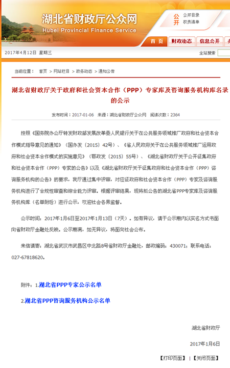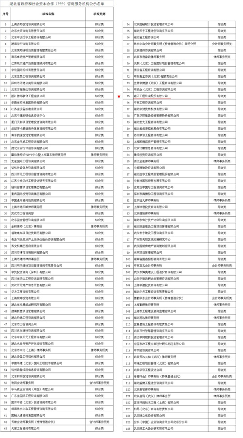 我司入選湖北省財政廳PPP咨詢服務(wù)機構(gòu)庫,同時3位同事入選湖北PPP專家?guī)?/span>
