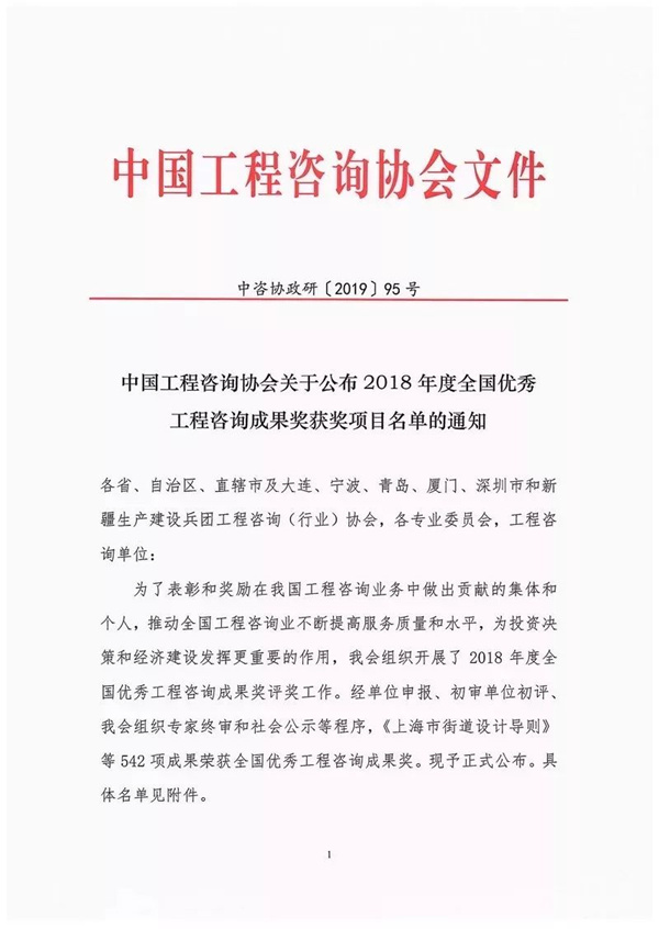 “全國優(yōu)秀工程咨詢成果獎”自1996年經(jīng)國家發(fā)改委批準正式設立,后經(jīng)國務院監(jiān)察部確認保留,并由中國工程咨詢協(xié)會每兩年組織評選一次的工程咨詢行業(yè)的全國性獎項,旨在表彰和獎勵在我國工程咨詢業(yè)務實踐中做出突出貢獻的集體和個人,獲獎項目被認為是代表我國工程咨詢界最高水平的項目,其工程咨詢成果具有創(chuàng)新性和推廣應用前景,能夠積極地推動全國工程咨詢業(yè)服務質(zhì)量和水平的不斷提高,促進投資決策科學、規(guī)范地實施,更好地為我國經(jīng)濟建設發(fā)展提供專業(yè)的咨詢服務。