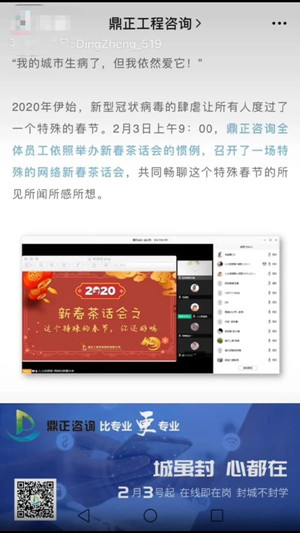因疫情防控的需要,很多行業(yè)不得不延遲復(fù)工,建設(shè)行業(yè)亦是如此。為有效應(yīng)對這次疫情,將其影響降到最低,鼎正工程咨詢股份有限公司領(lǐng)導(dǎo)層快速反應(yīng),制定了一系列緊急預(yù)案,采取應(yīng)對疫情的各項(xiàng)措施,并開展遠(yuǎn)程辦公和線上培訓(xùn)學(xué)習(xí)。